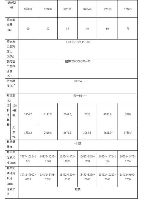 SZS型蒸汽鍋爐技術(shù)參數(shù):